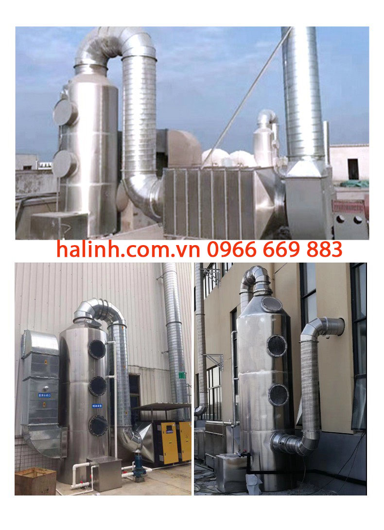 Thân tháp được làm bằng innox 304 , dày 3mm hoặc 5 mm tùy thuộc vào tỷ lệ thuận với đường kính thân tháp cho môi trường khí thải có nhiệt độ cao