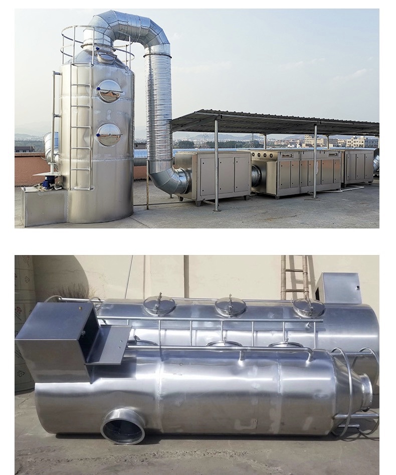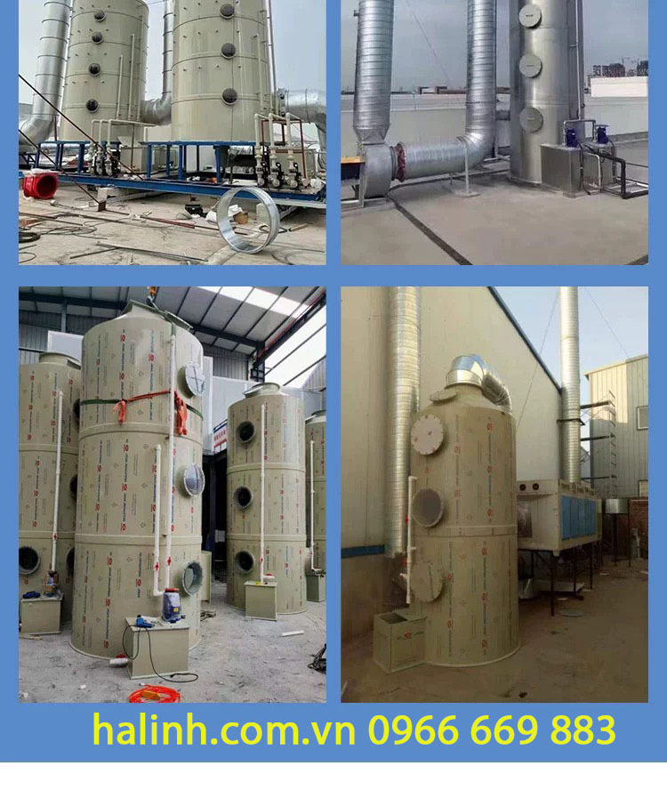 Quá trình hấp thụ: Tháp hấp thụ sử dụng chất xúc tác hoặc chất hấp thụ để tiếp xúc và hấp thụ các chất ô nhiễm trong khí thải. Khi khí thải đi qua tháp hấp thụ , chất xúc tác hoặc chất hấp thụ được phun dạng sương mù trong tháp hấp thụ để tạo ra một môi trường tương tác với khí thải. Các chất ô nhiễm trong khí thải sẽ phản ứng với chất xúc tác hoặc được hấp thụ bởi chất hấp thụ.